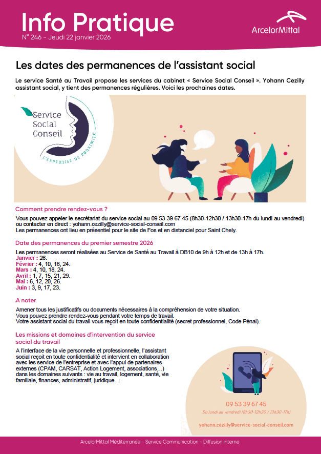 assistant social, y tient des permanences régulières.